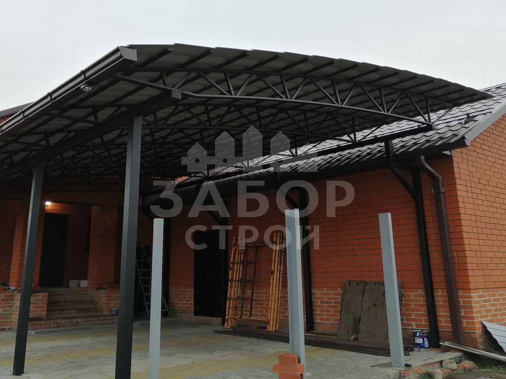 Поэтому компания "НавесСтрой" настоятельно рекомендует не экономить, а усилить каркас навеса из металлочерепицы более жёсткими профилями с увеличенной толщиной металла и количеством несущих ферм.